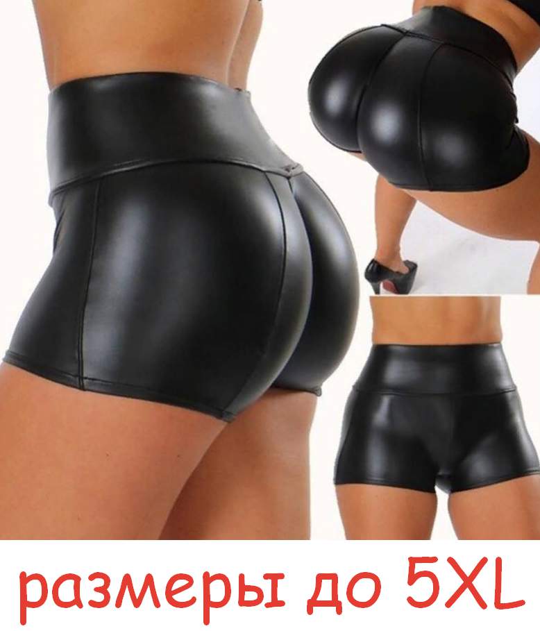 Черные шорты из винила с карманом на кнопках