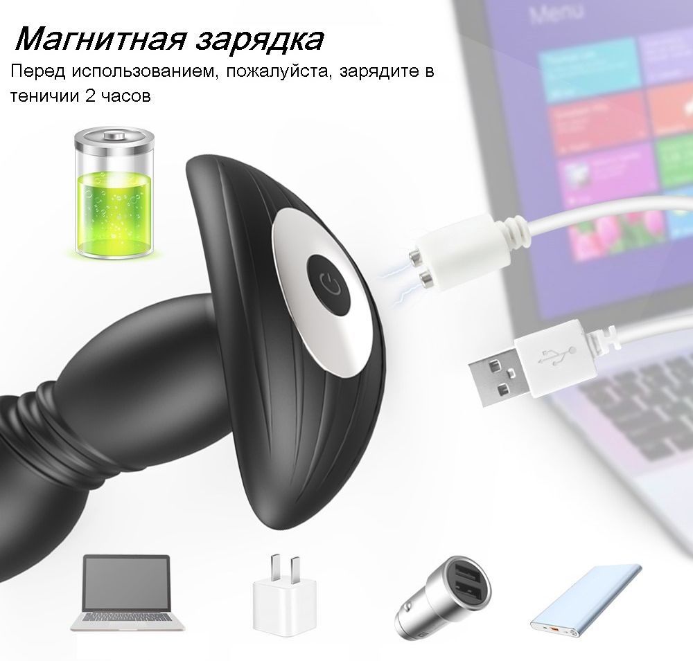 1) Зарядите устройство в течении 2х часов, для этого примагнитьте штекер к порту для зарядки, а другой конец вставьте в USB разъем.