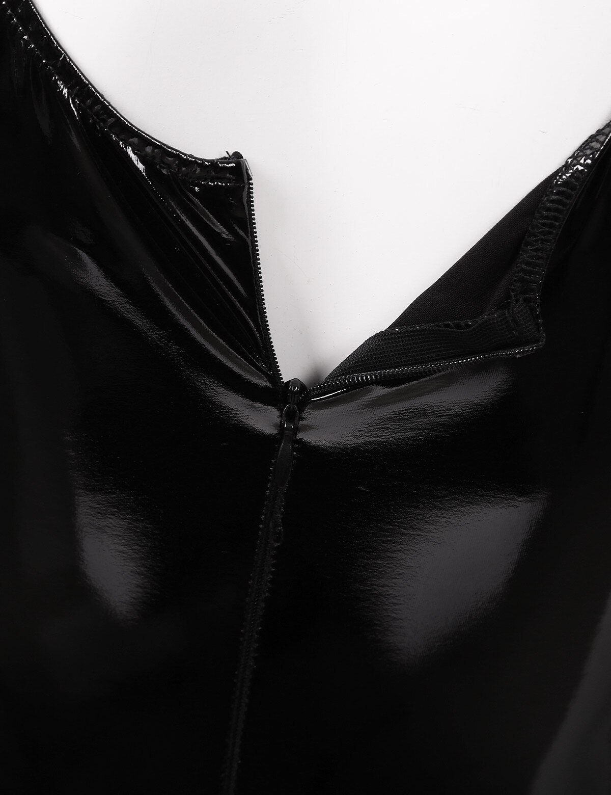 Комбинезон эластичный, по блеску имитирует латекс. Материал при ходьбе поскрипывает. Чтобы уменьшить шум, натрите его интимной смазкой.