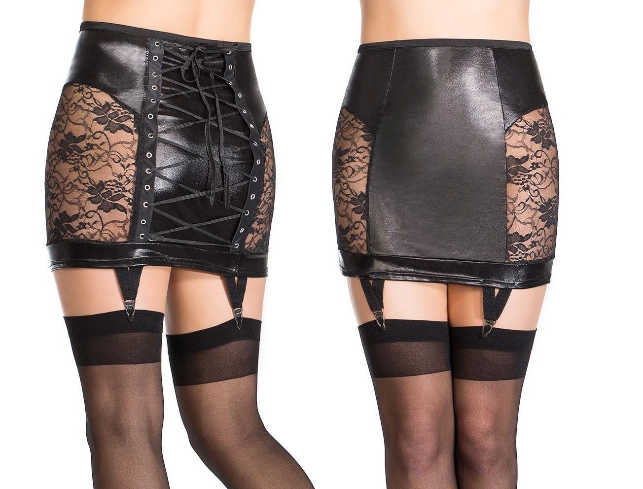 Юбка имеет несъемные регулируемые по длине пажи для чулок