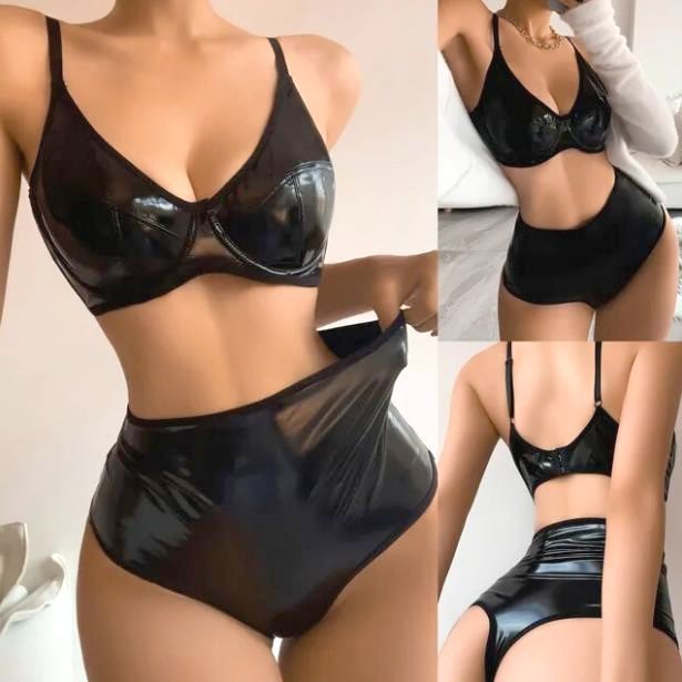Бюстгальтер мягкий, эластичный, без косточек под грудью, имеет застежку сзади на 2 крючка. Трусики-стринги высокой посадки.