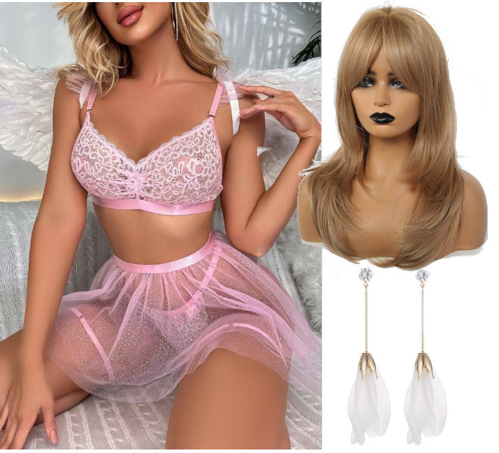 Комплектация: бюстгальтер, трусики, юбка, 2 подвязки на ноги