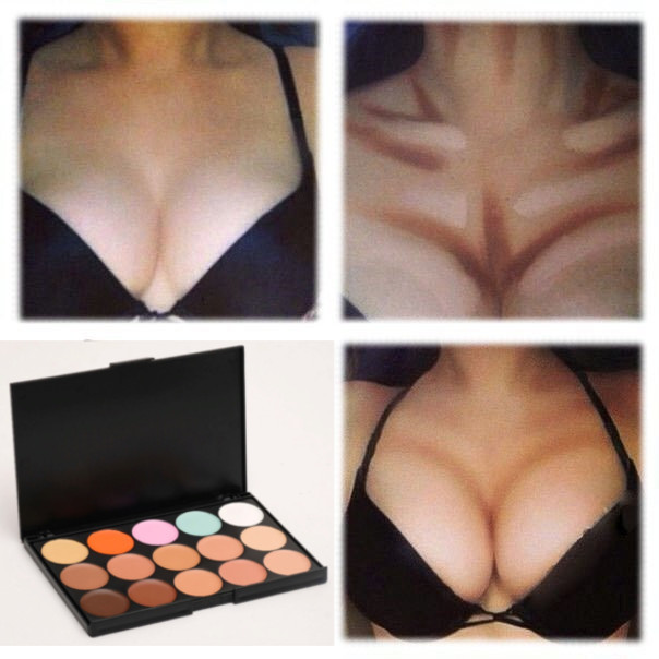 Увеличение бюста с помощью косметики является совершенно нормальной процедурой, которой пользуются многие звезды для более эффектных фотографий. На любой съемочной площадке и публичных мероприятиях визажисты делают макияж не только лица, но и груди.