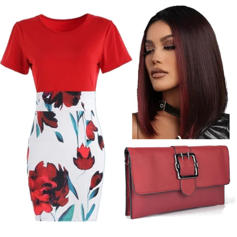 - Парик каре в темно-вишневом оттенке