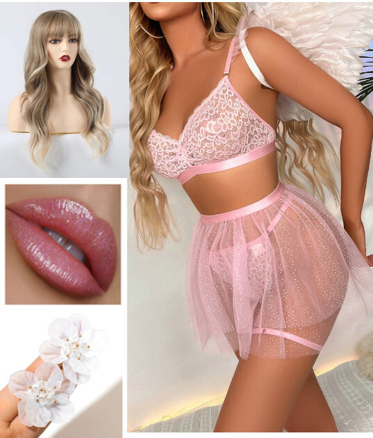 Комплектация: бюстгальтер, трусики, юбка, 2 подвязки на ноги