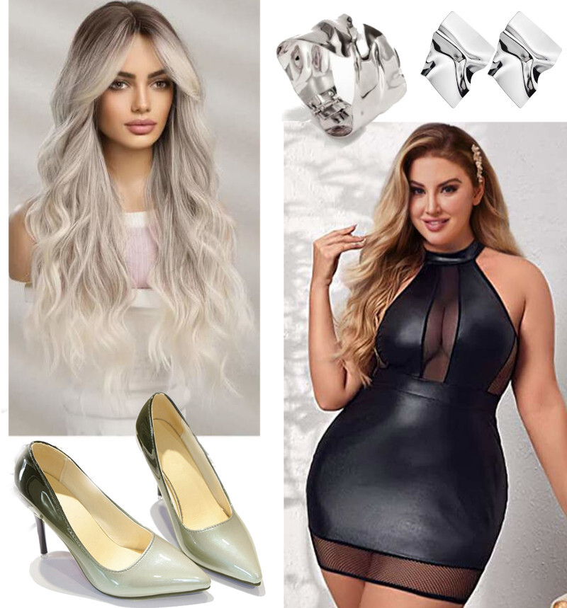 Данное платье выполнено из полиэстера - материала, имитирующего винил. Его особенность заключается в эластичности и обтягивании фигуры (у винила такой особенности нет).