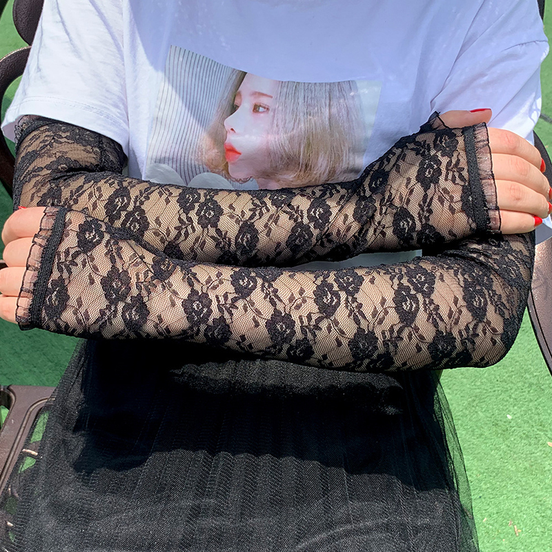 Длинные кружевные перчатки без пальцев