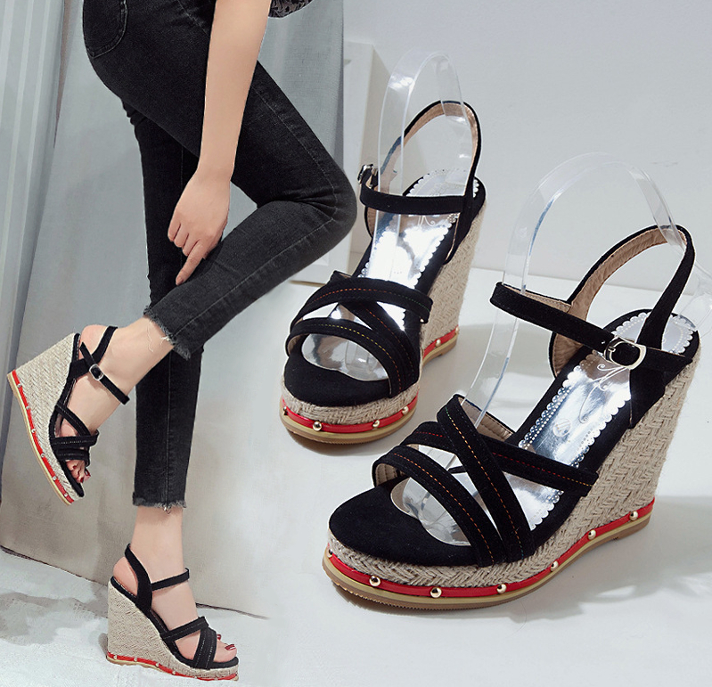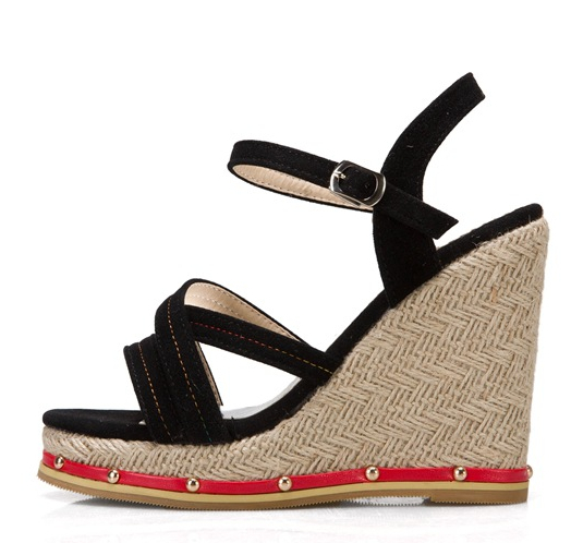 Замшевые босоножки на танкетке