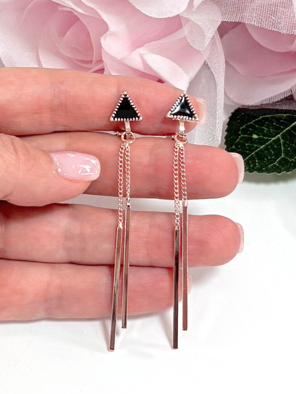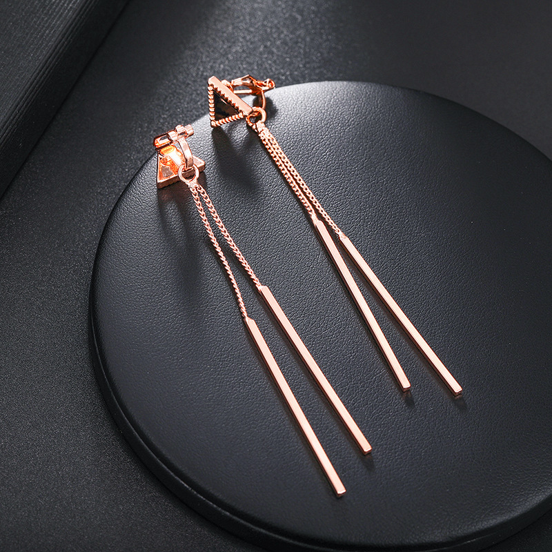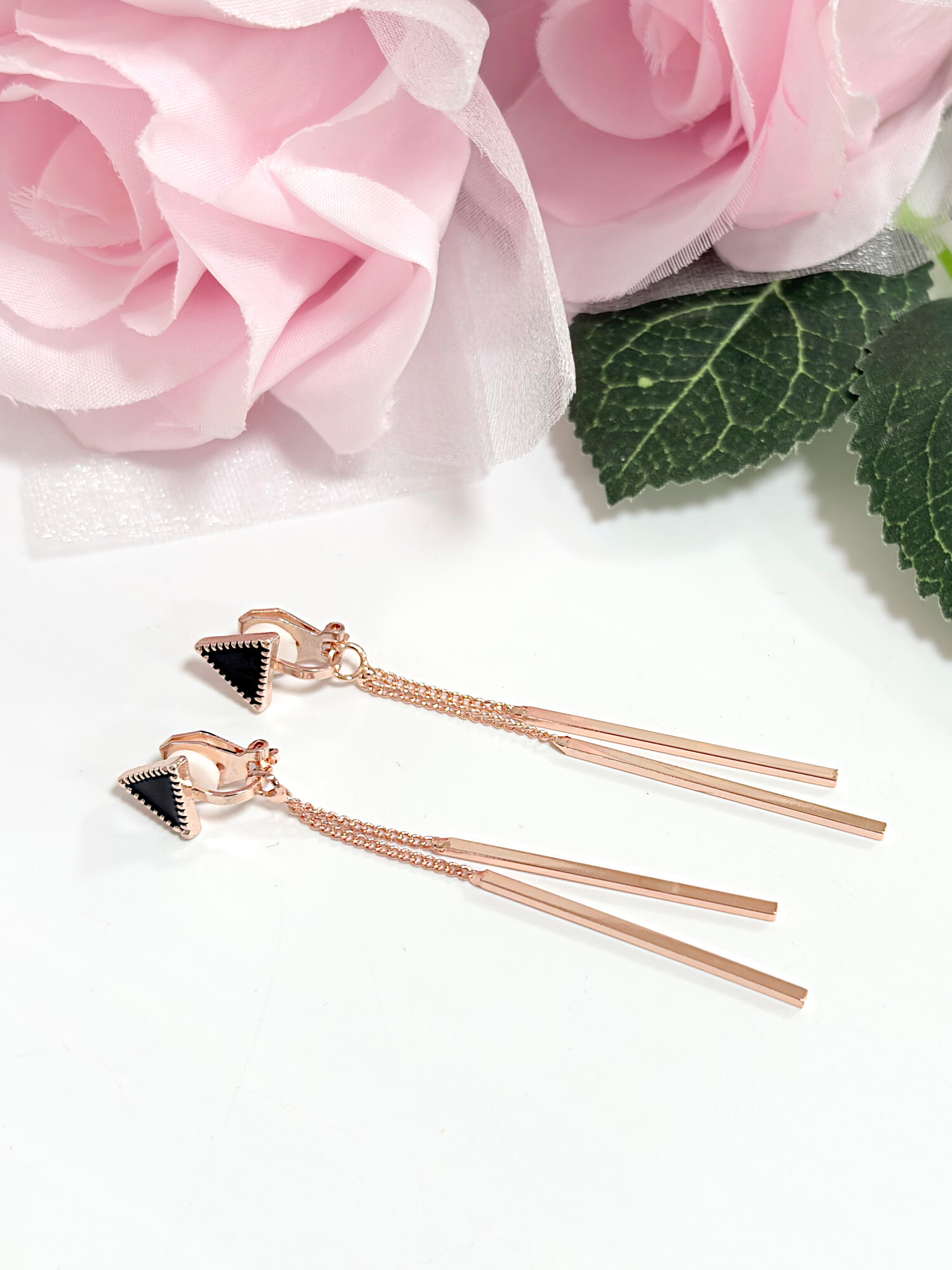 Клипсы с цепочками "Альбина" треугольник (розовое золото)