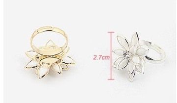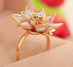 Очень выразительное красивое объёмное кольцо, у него привлекательный рельеф, лепестки цветка можно двигать, тем самым придавая тот самый объём "кольца лотос", элементы кольца скреплены крепко, оно вроде бы и не металлическое, но крепкое. Можно регулировать размер, что, в общем–то, не заметно на пальцах, правда не на очень толстых. Цвет кольца серебряный, при длительном использовании не меняется, в отличии от золотистых изделий, у которых он приобретает тёмно–медный цвет, или иногда чернеет, поэтому советую брать украшения (ежели они не из драгоценных металлов или не покрыты ими) цвета "серебро"; правда у моего кольца был небольшой недостаток: у него была отбита краска на довольно большом участке и виднелась некрасивого красного цвета поверхность (наверное, это дефект производства и Вам, покупатели, скорее всего, такой образец не должен попасться), – но если не смотреть, в общем, кольцо приятное для повседневного использования.