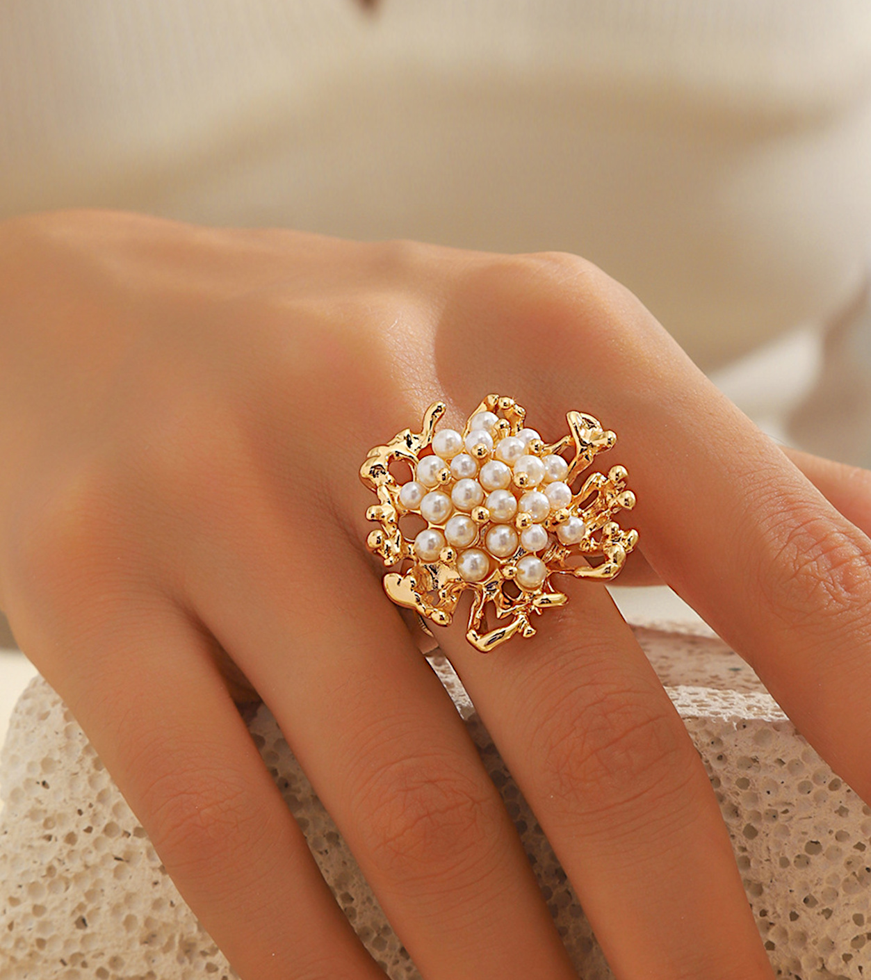 Кольцо "открытое", т.е. может быть адаптировано под разный размер пальца.