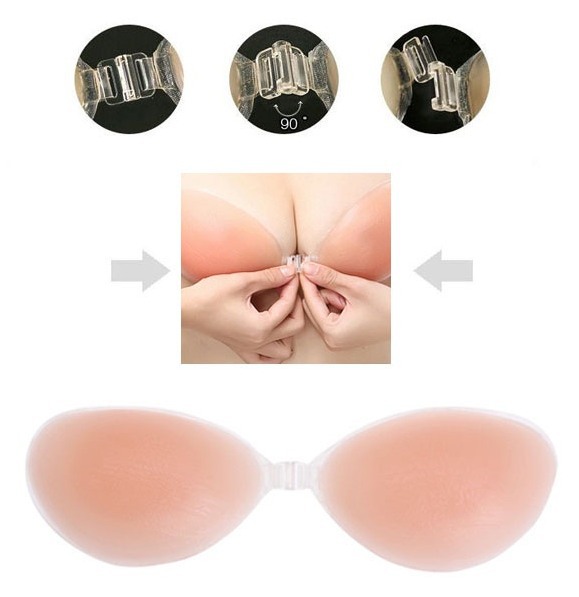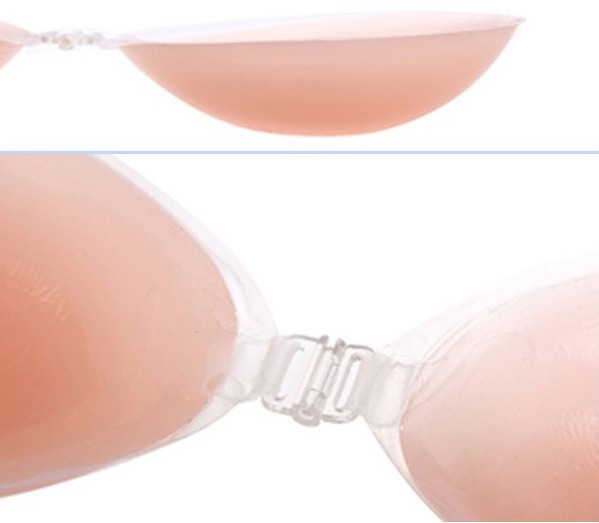 Приклейте силиконовые накладки на кожу на уровне сосков максимально далеко от центра груди. Но имейте в виду, что если Вы разместите чашечки слишком далеко от центра груди, то не сможете их застегнуть в дальнейшем. Если разместите их слишком близко, то не получите эффекта естественной ложбинки. Возможно придется поэкспериментировать, чтобы определить оптимальное место приклеивания накладки.