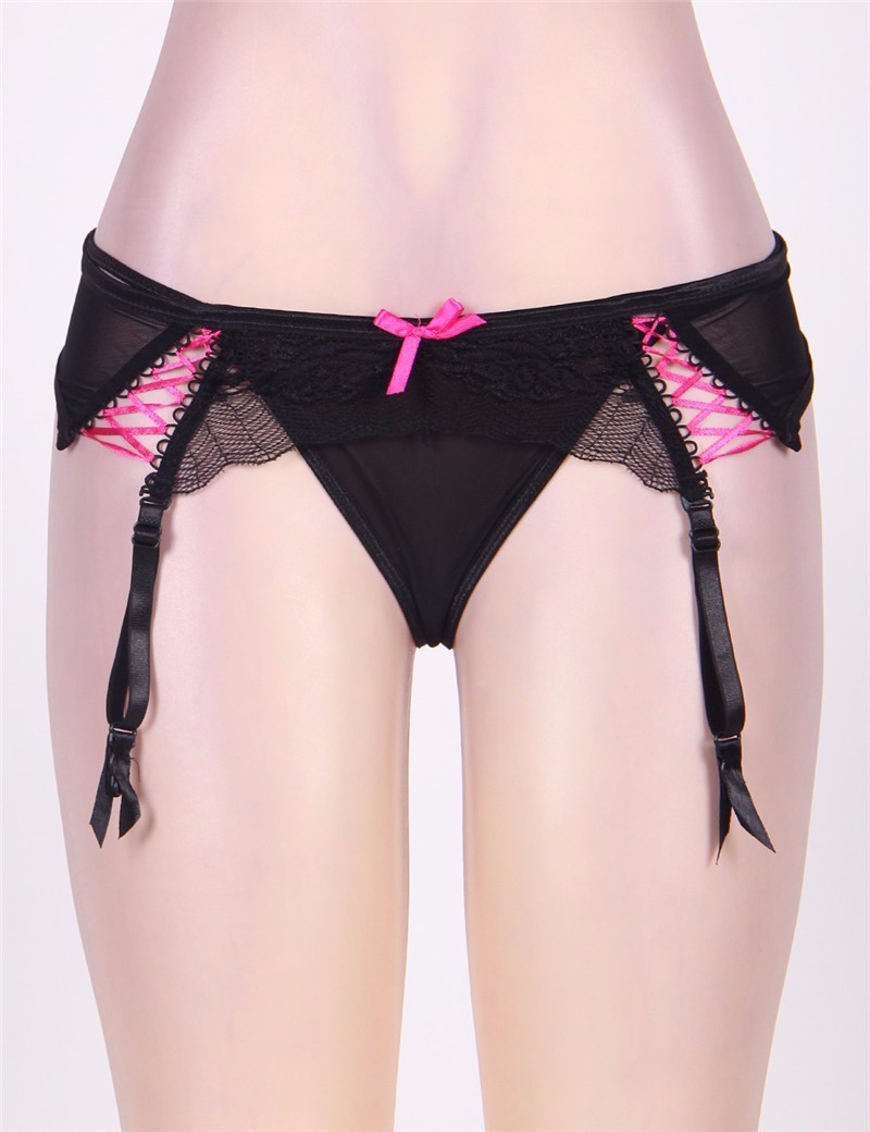 Пояс немного большемерит. Регулировка взади на два крючка в три ряда. Помимо регулировки взади на талии, можно уменьшить размер по бедрам - розовой шнуровкой спереди, но если убрать её в ноль, не так красиво смотрится, лучше взади поджать, а спереди распустить. Можете смело брать на размер меньше. Красивая розовая шнуровка и бантик приятно радуют глаз.) 4е зажима достаточно крепко держат чулки. Трусики стринги - большой треугольник, не эрегированное мужское достоинство умещается в сложенном виде ))) Но при этом материя прозрачна, имейте ввиду )))))