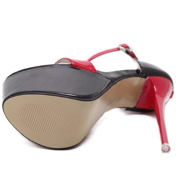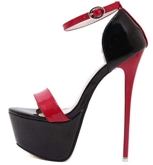 Красно-черные босоножки на платформе