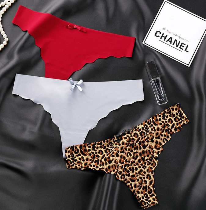 Комплект состоит из 3-х разноцветных трусиков одинакового размера. В наборе леопардовые, красные и белые стринги.
