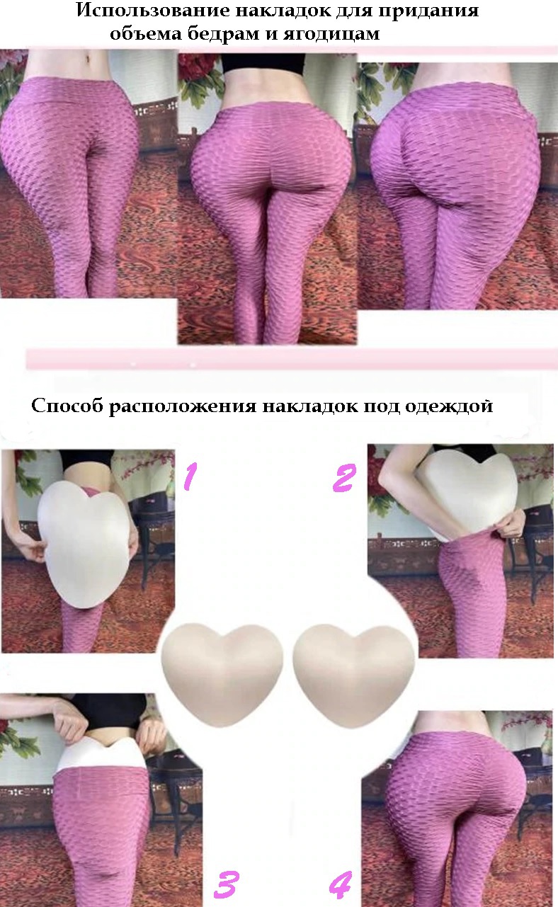 Для правильного и красивого размещения накладных бедер и получения ровного силуэта необходимо использовать плотные колготки или леггинсы.