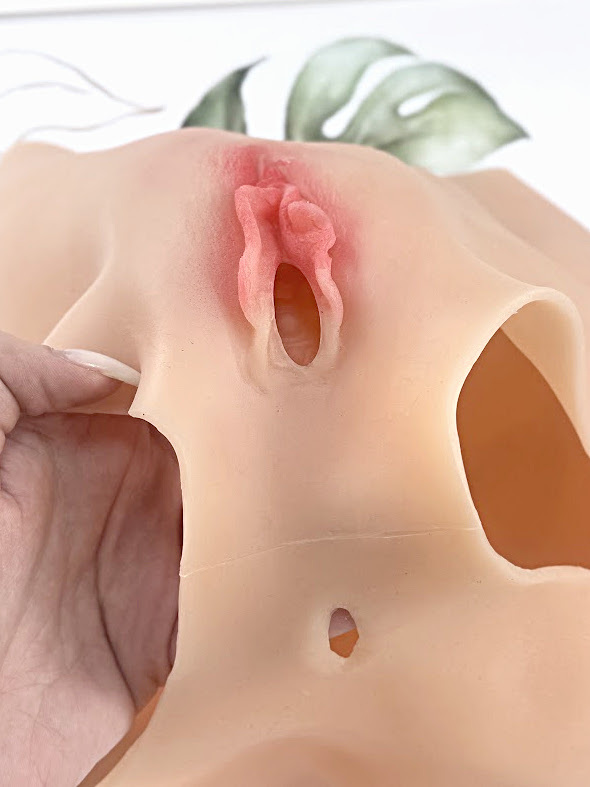Накладная вагина имеет вагинальное отверстие со встроенным внутренним чехлом, размещенным по линии живота. Внутренняя поверхность вагинального чехла имитирует рельеф внутренней поверхности влагалища.