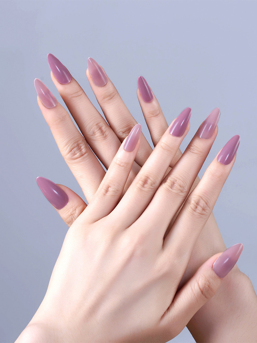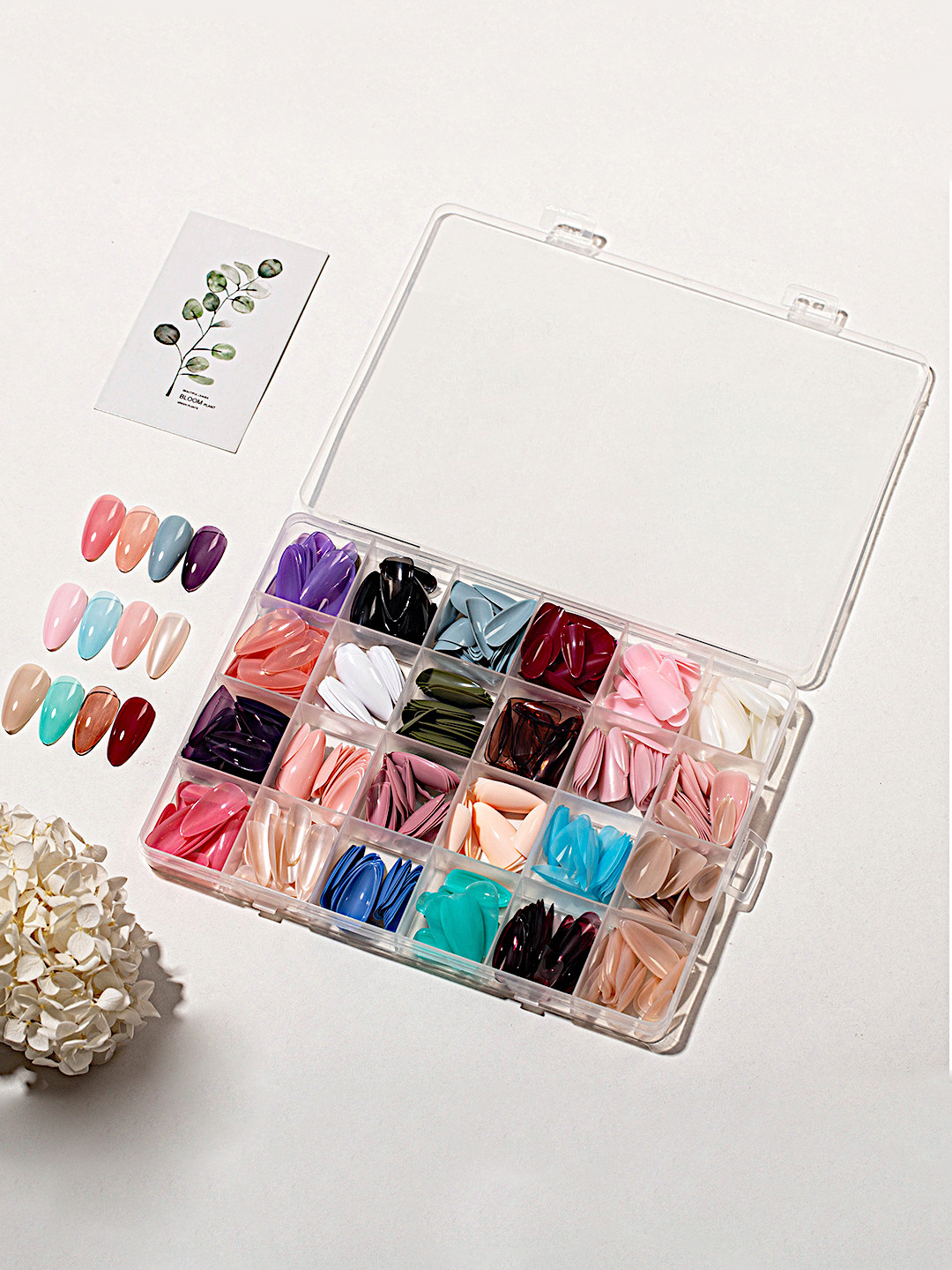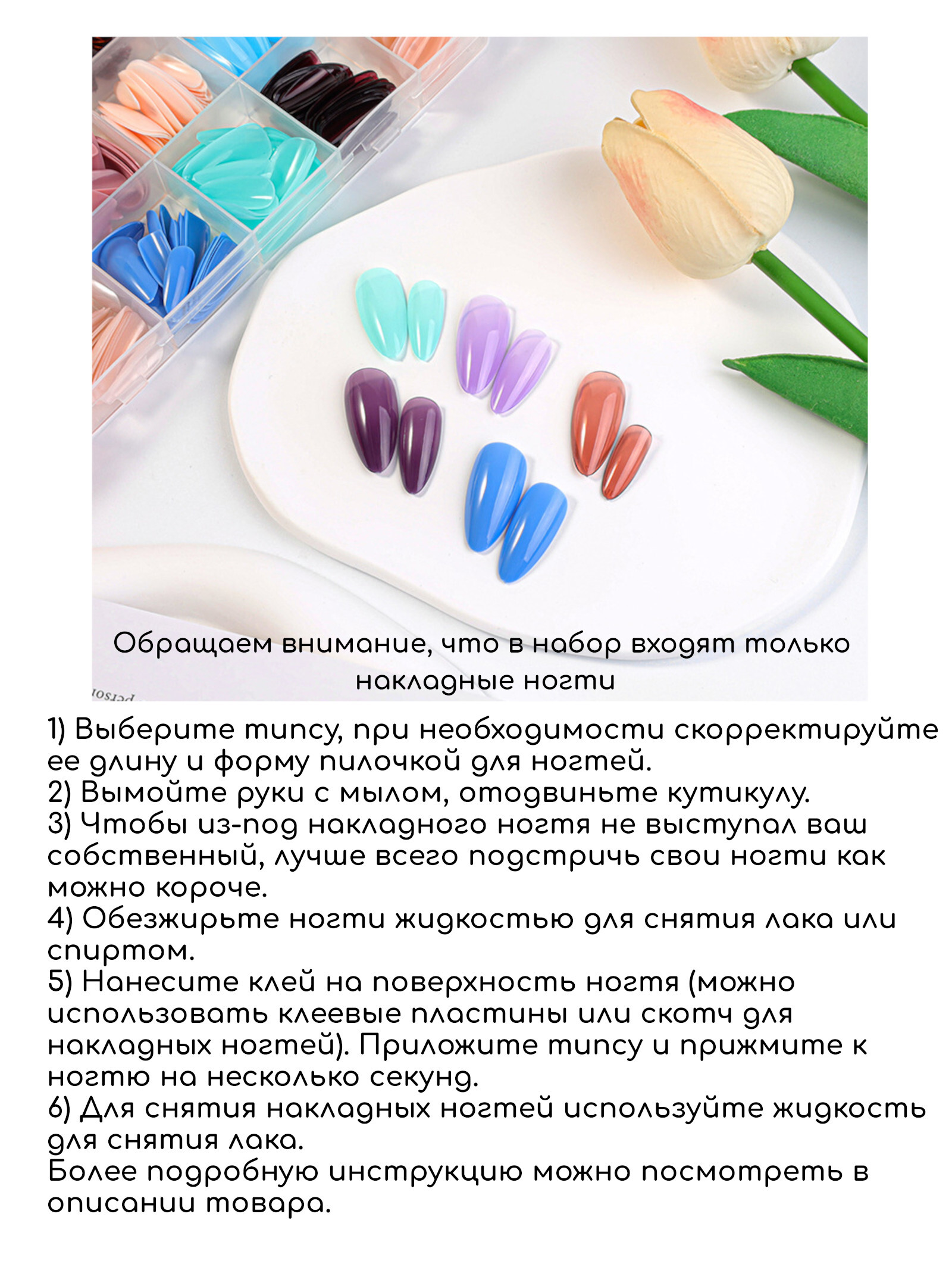 1) Подготовьте типсы накладных ногтей к приклеиванию - подберите нужные размеры из набора, пилочкой для ногтей скорректируйте длину и форму ложа.