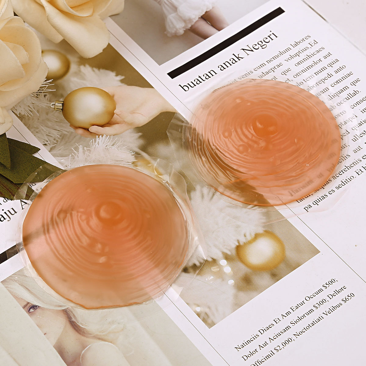 На обратной стороне сосков нанесен многоразовый клеевой слой из липкого силикона. Не пачкает одежду. Для восстановления клеящих свойств промыть мыльной водой и высушить на открытом воздухе.