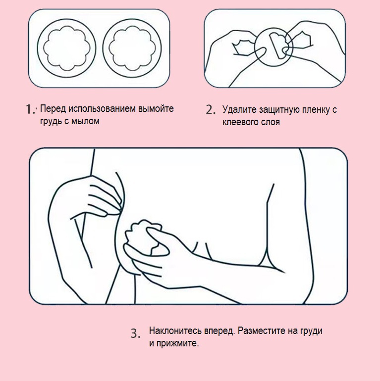 На обратной стороне сосков нанесен многоразовый клеевой слой из липкого силикона. Не пачкает одежду. Для восстановления клеящих свойств промыть мыльной водой и высушить на открытом воздухе.