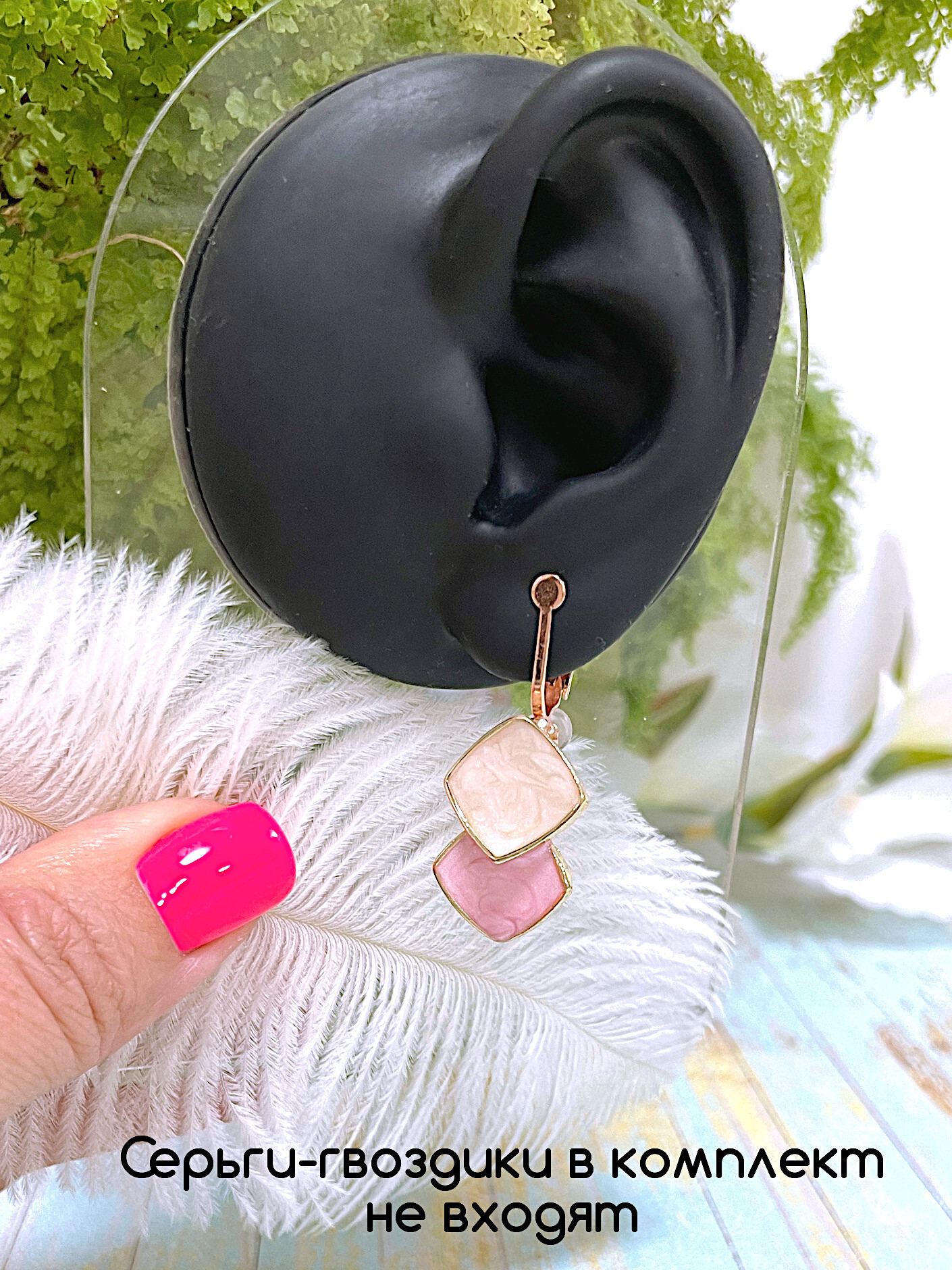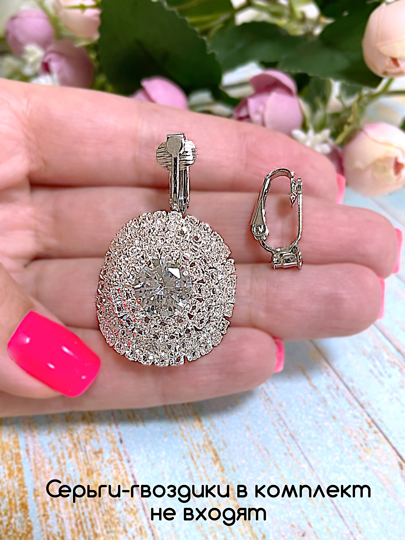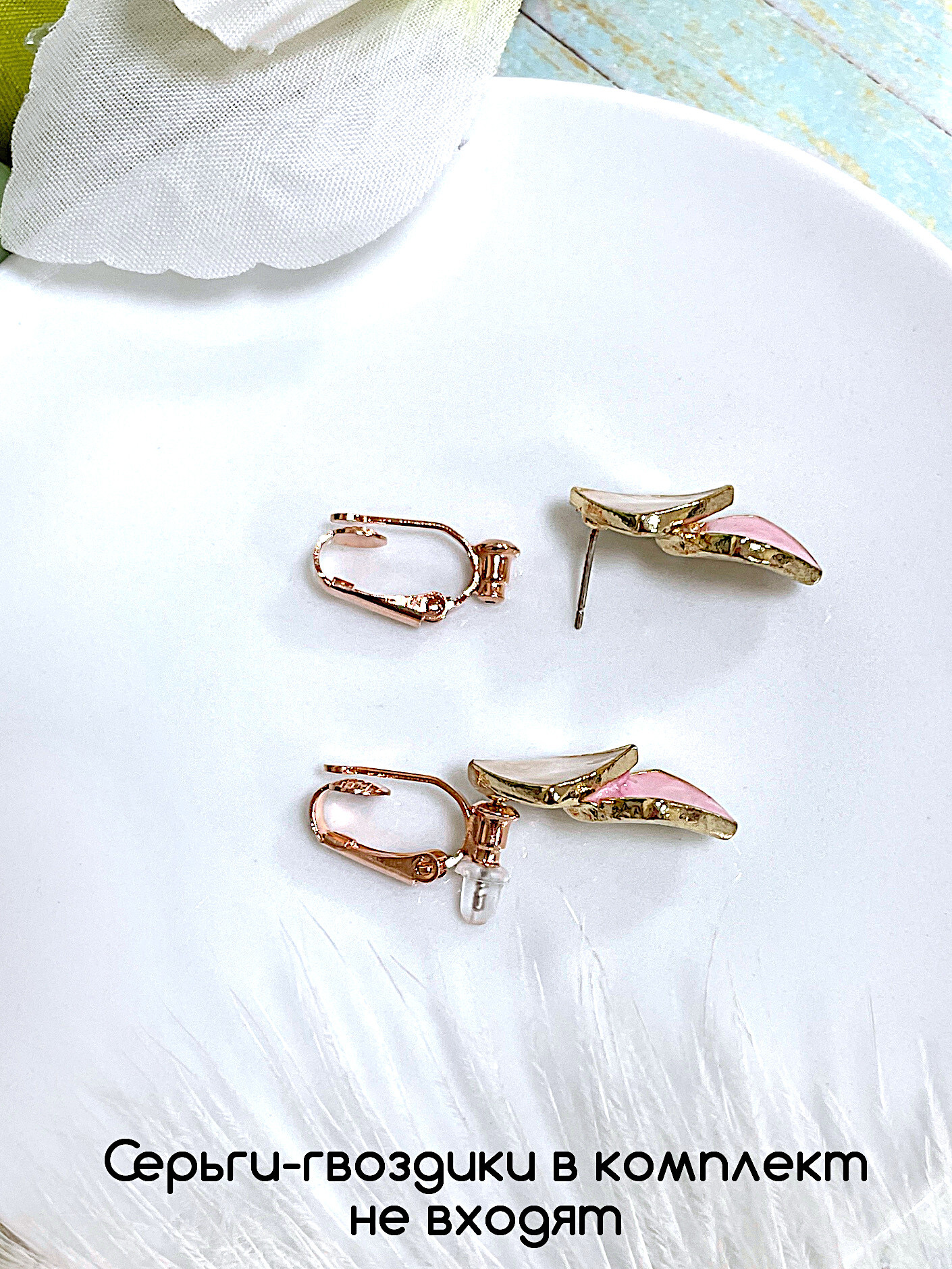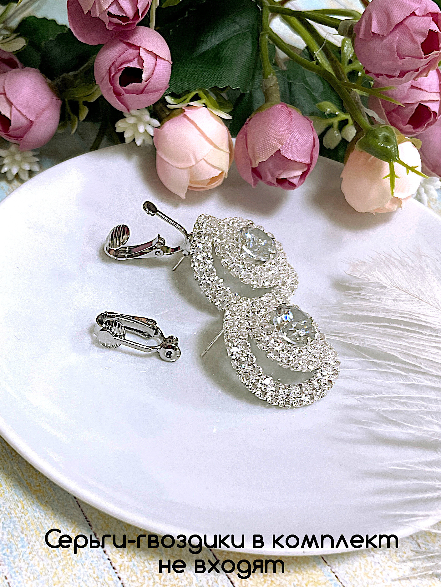 Серьги-гвоздики на фотографиях в комплект не входят.
