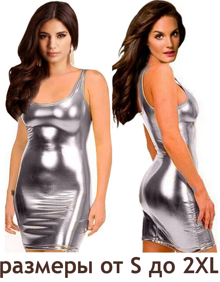 Данное платье выполнено из полиэстера, имитирующего винил. Его особенность заключается в эластичности и обтягивании фигуры (у винила такой особенности нет).