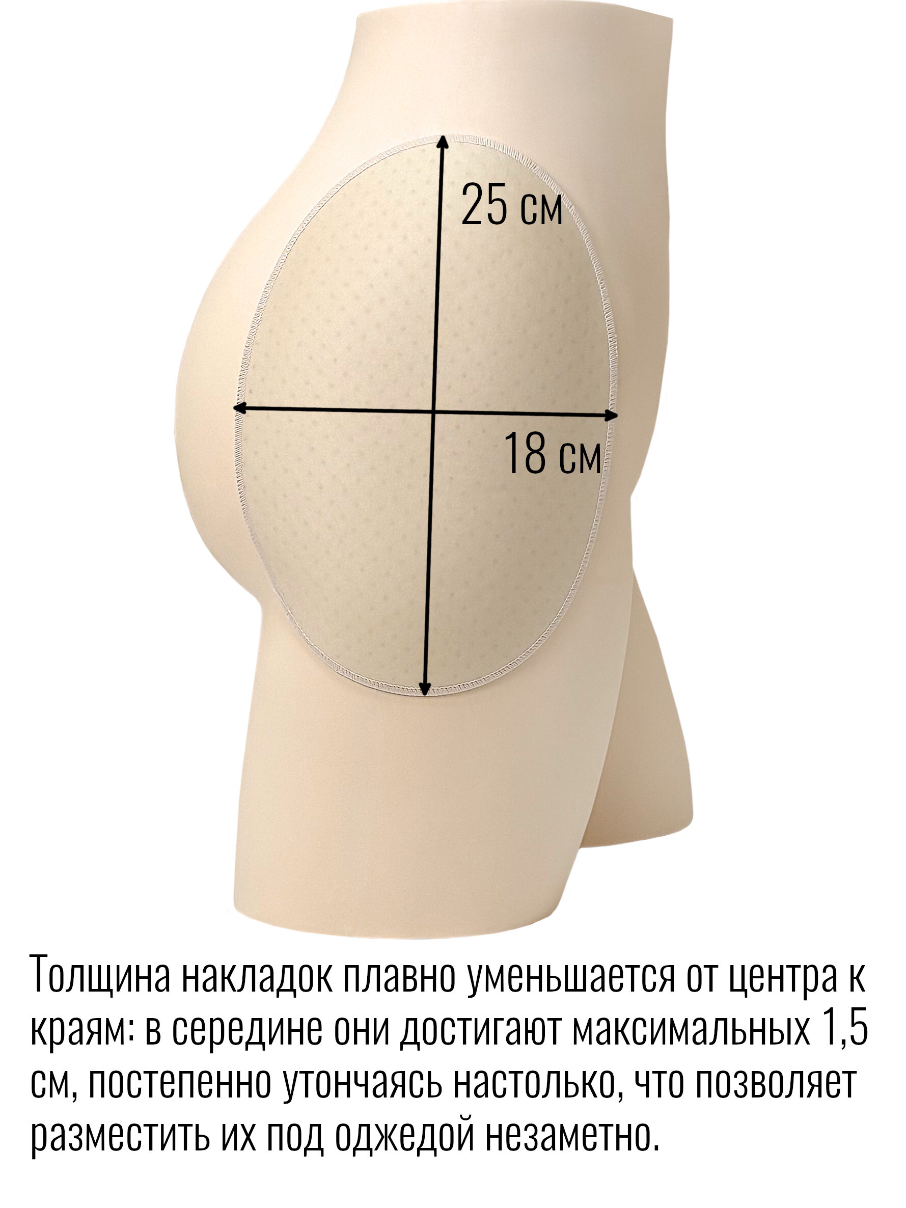 Накладки предназначены для незначительного увеличения объема бедер и придания им более женственной формы .