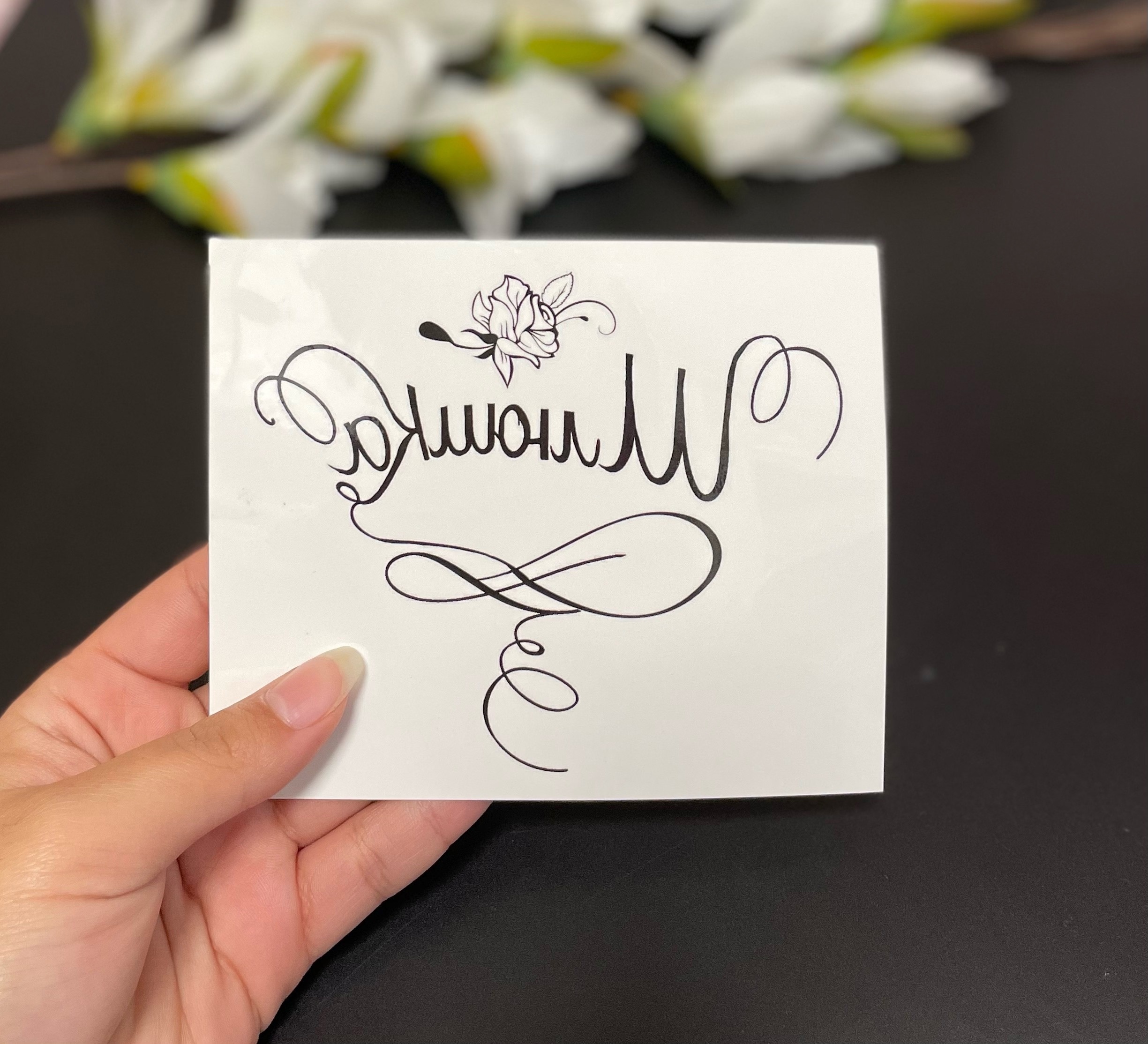 3. Приложите татуировку к выбранному месту липким слоем к коже. Убедитесь, что татуировка плотно прилегает к коже всей своей поверхностью.