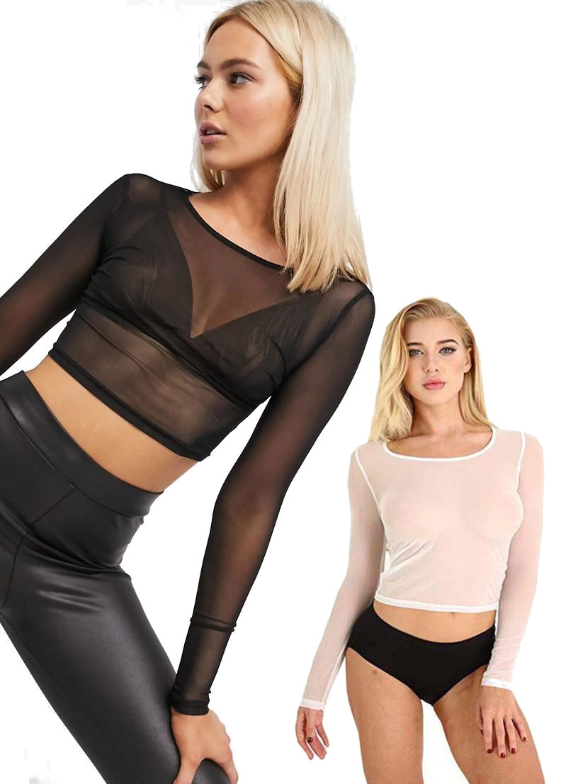 Футболка выполнена из приятной к телу прозрачной микросетки. Материал очень эластичный