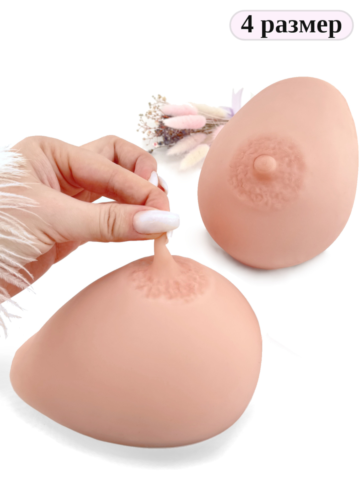 1 слой. Наружная оболочка — изготовлена из более мягкого материала с бархатистой поверхностью, создающей эффект настоящей кожи. Прикосновения к ней вызывают ощущение живой, тёплой, естественной груди.