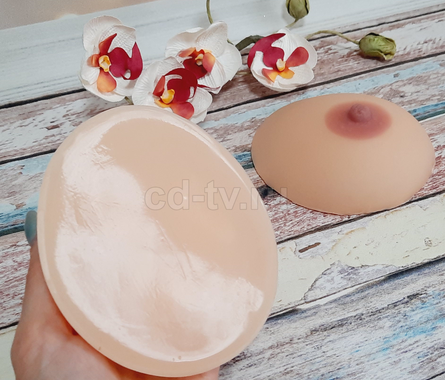 Благодаря принципиально иному способу производства данная модель груди не имеет пленки на поверхности. Накладная грудь Венера не морщит при сжатии и более устойчива к механическим нагрузкам.