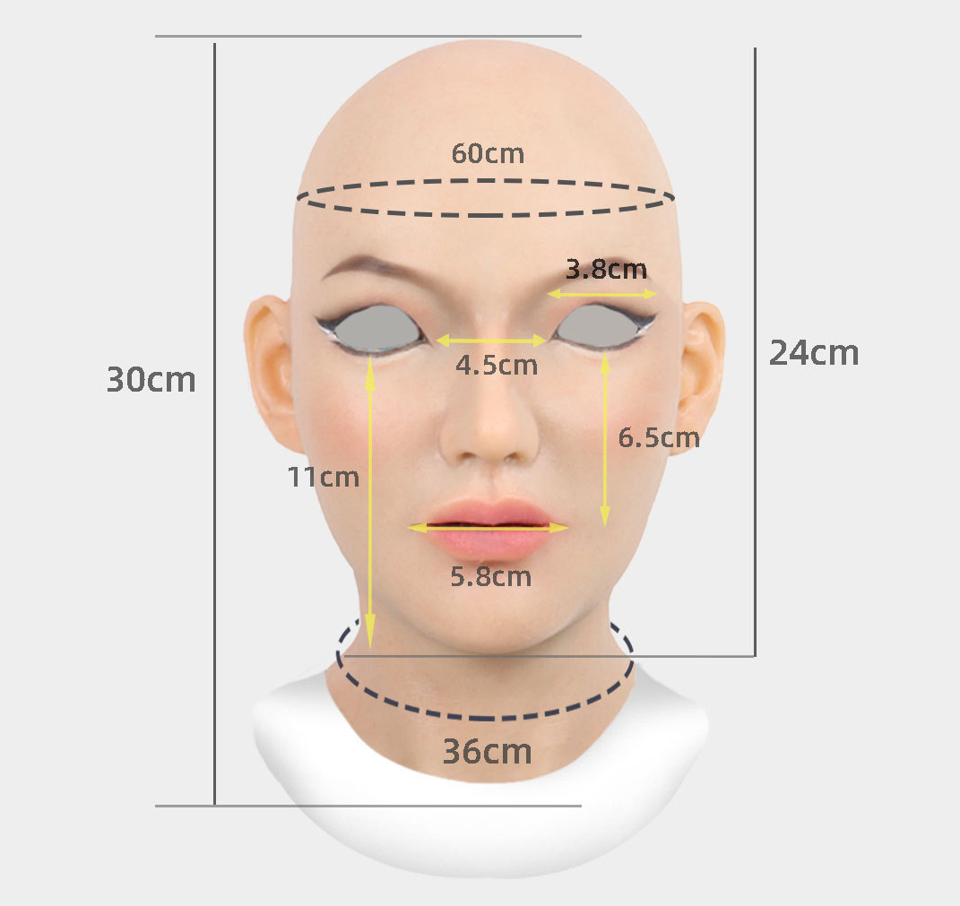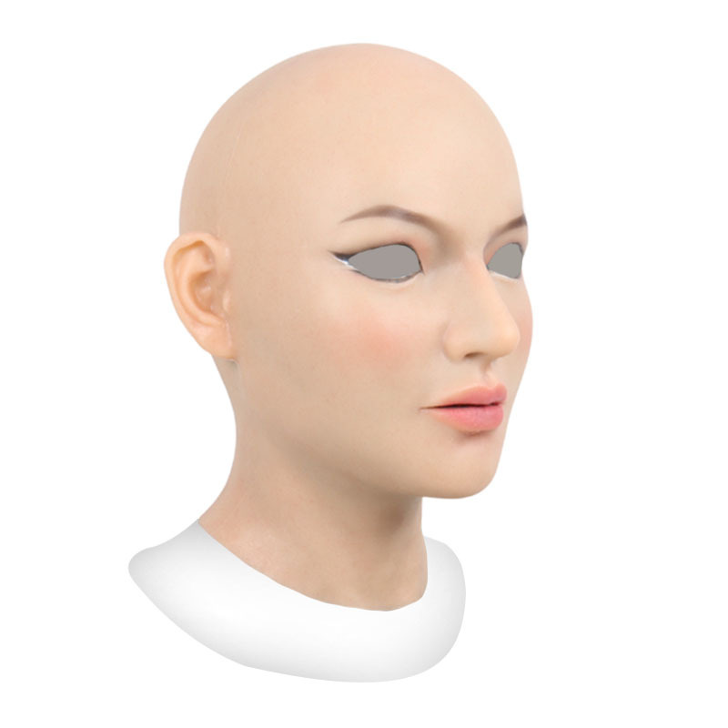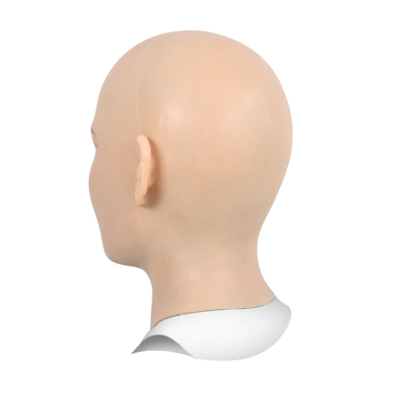 В комплект входит только маска. Глаза пустые. Брови нарисованы. Прорези в носу и в ушах. Рот открывается.