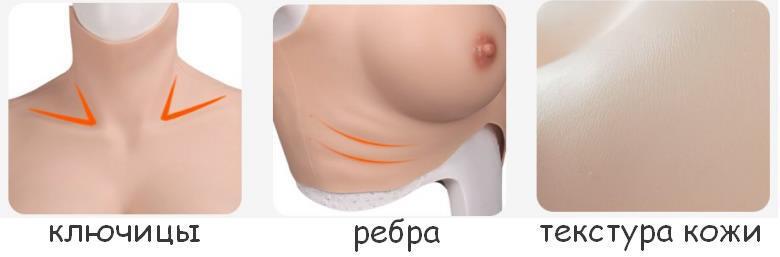 * Обхват вашей грудной клетки должен быть больше мерки, указанной в таблице, чтобы торс сидел на теле плотно. Силикон легко растягивается еще на 20-40 см.