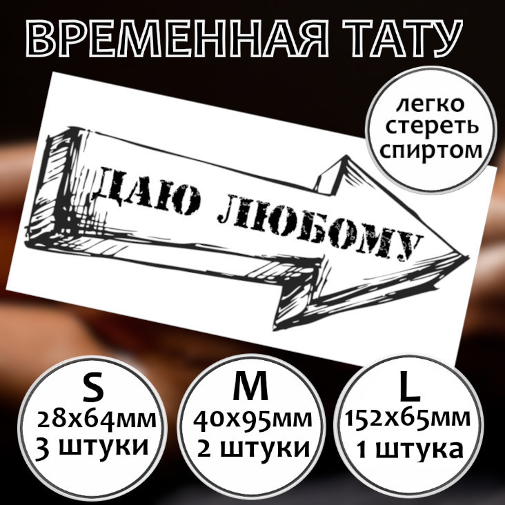 Размер S 2,8х6,4 см. В наборе 3 татуировки