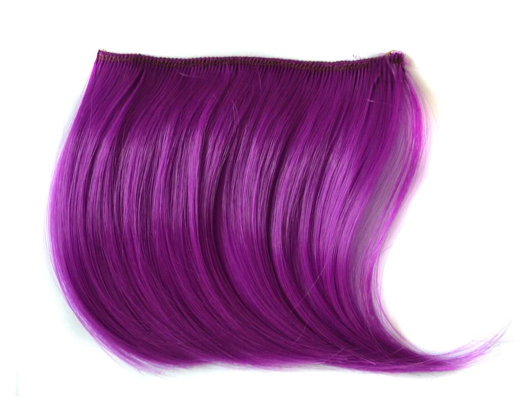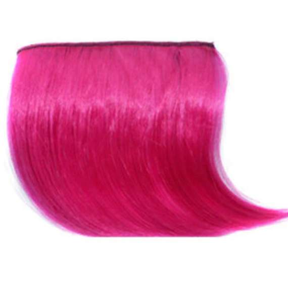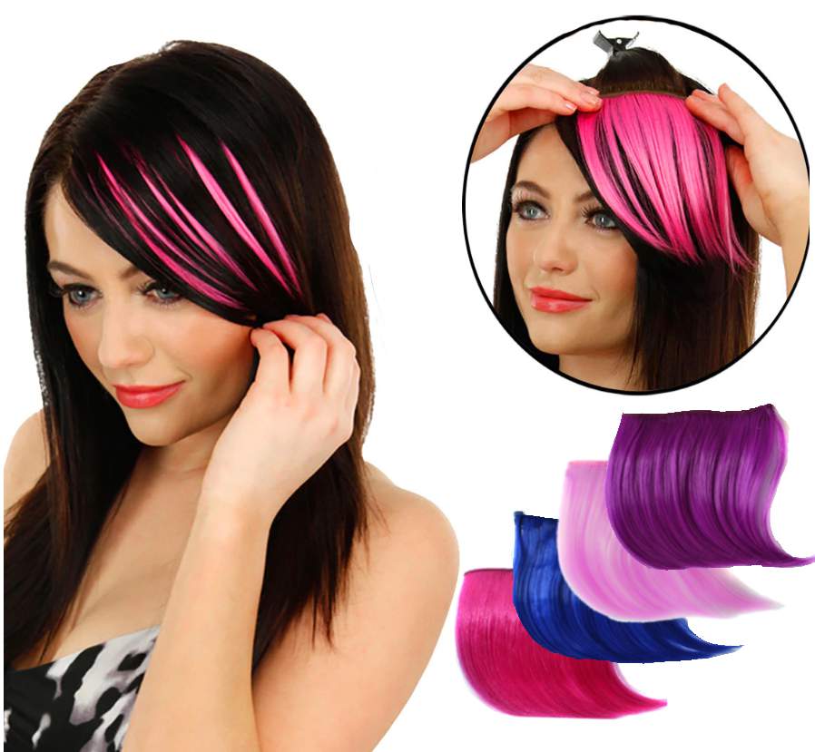 Поднимите прядь волос и закрепите под ней цветную накладку с помощью заколок. Опустите верхнюю прядь волос и расчешите волосы.