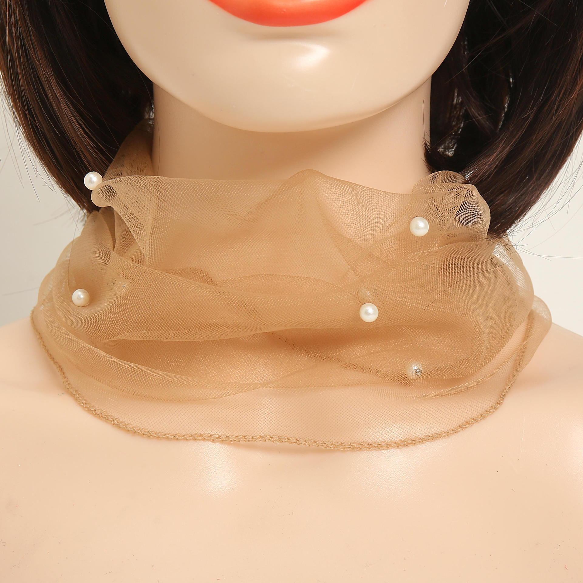 Шарф на шею с жемчужинками (коричневый)
