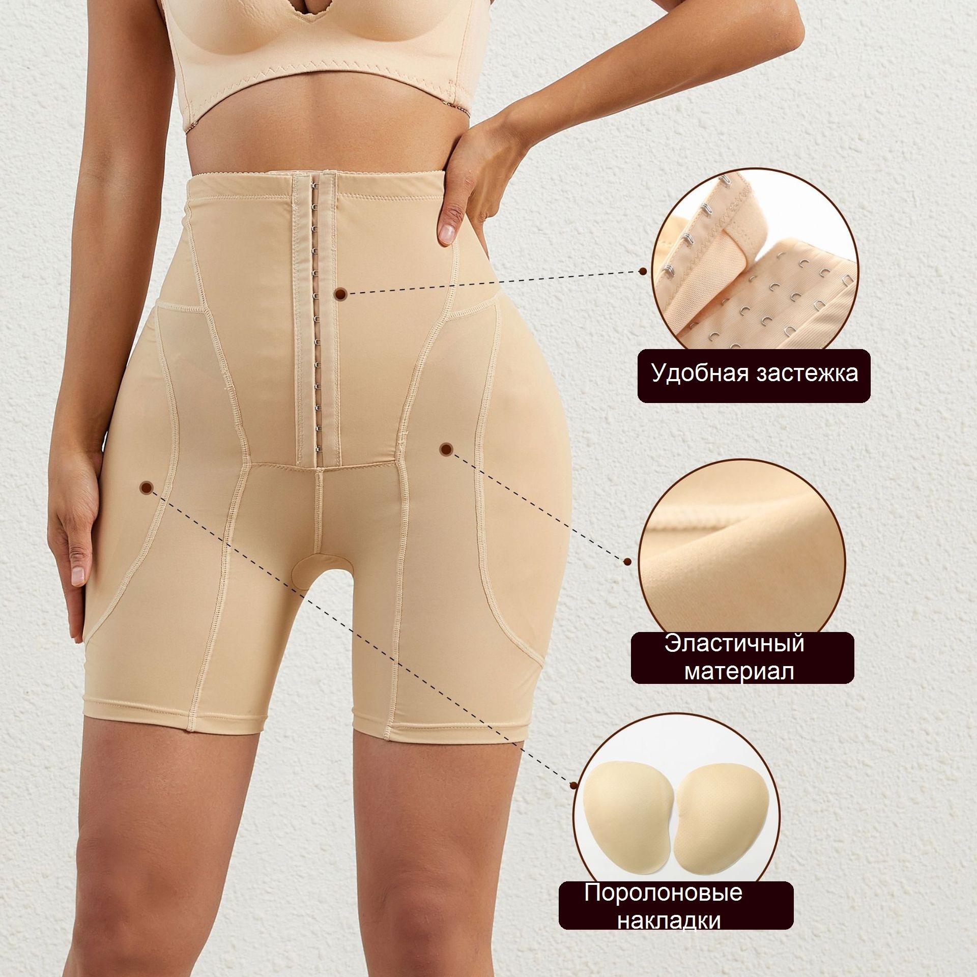 Шорты-панталоны для увеличения бедер с утяжкой талии (бежевые)
