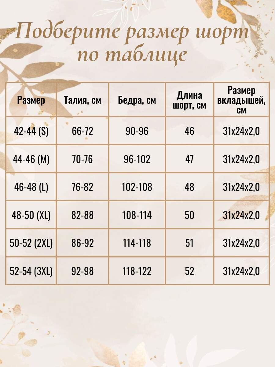 Подберите размер шорт по таблице.