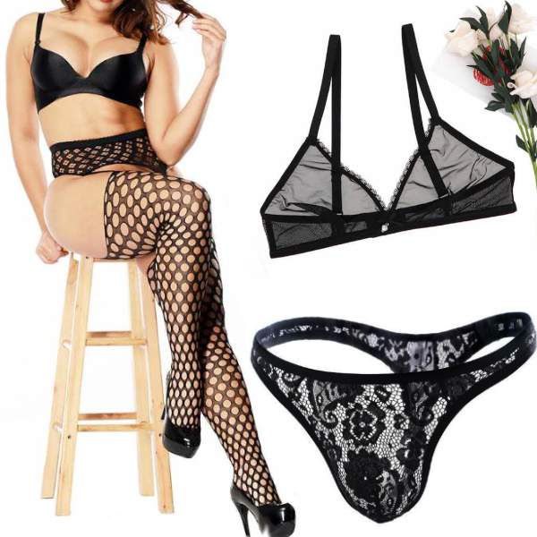 - Черный бюстгальтер из микросетки