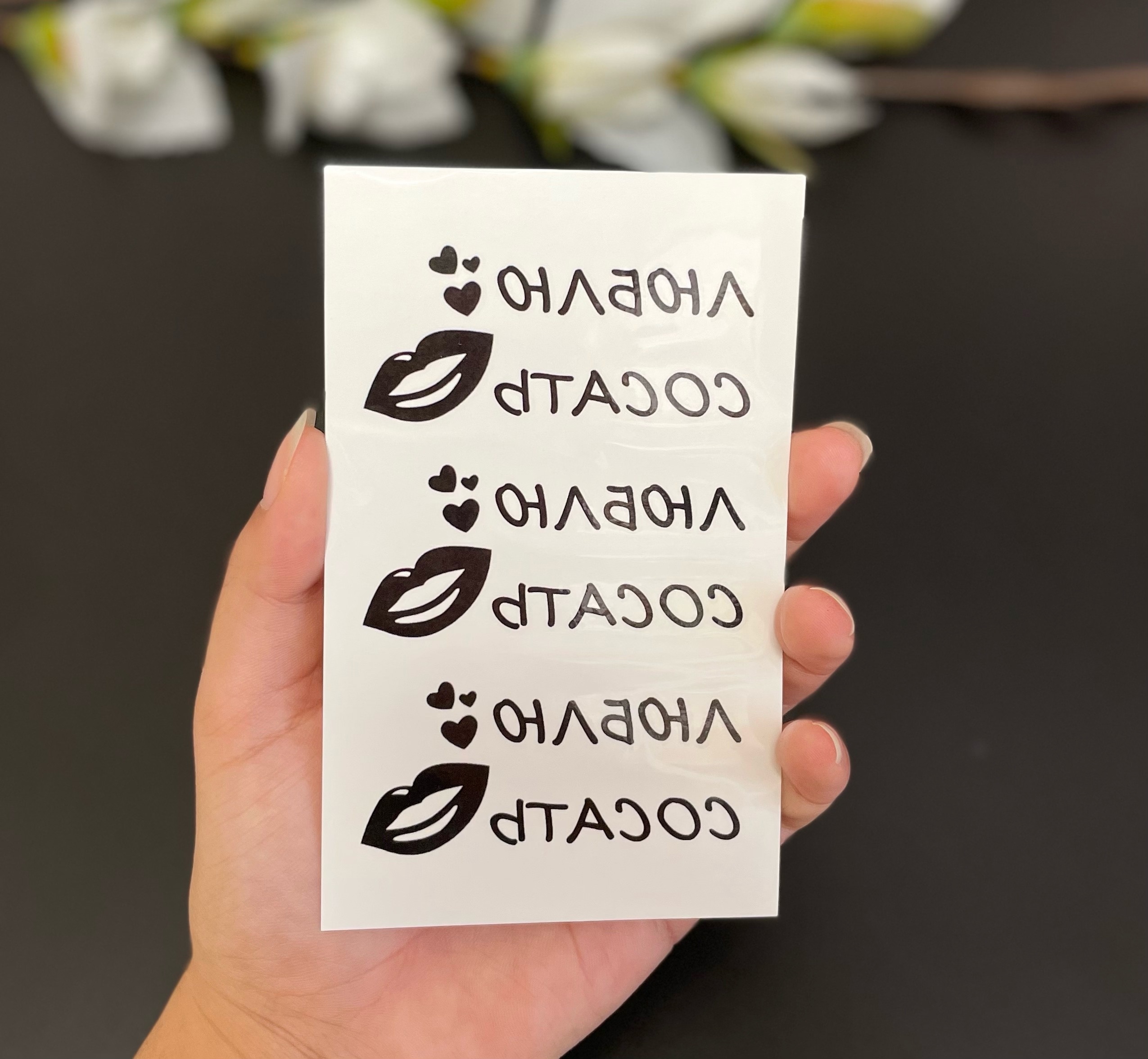3. Приложите татуировку к выбранному месту липким слоем к коже. Убедитесь, что татуировка плотно прилегает к коже всей своей поверхностью.