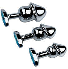 Металлическая анальная пробка, украшенная цветным камнем |