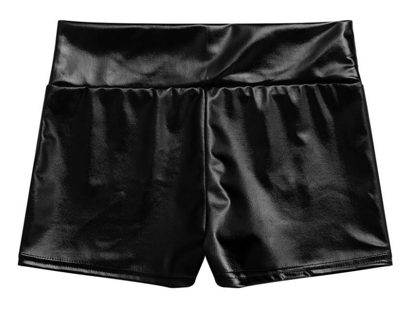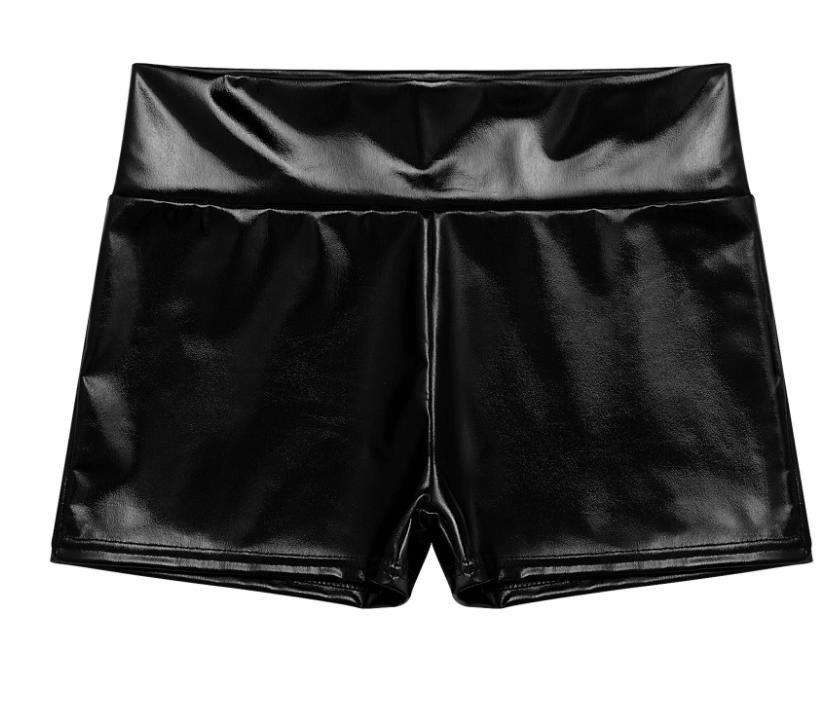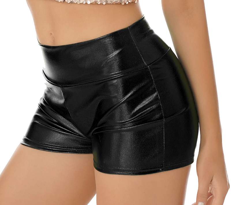 Короткие шортики из полиэстера, имитирующего винил, с высокой посадкой.