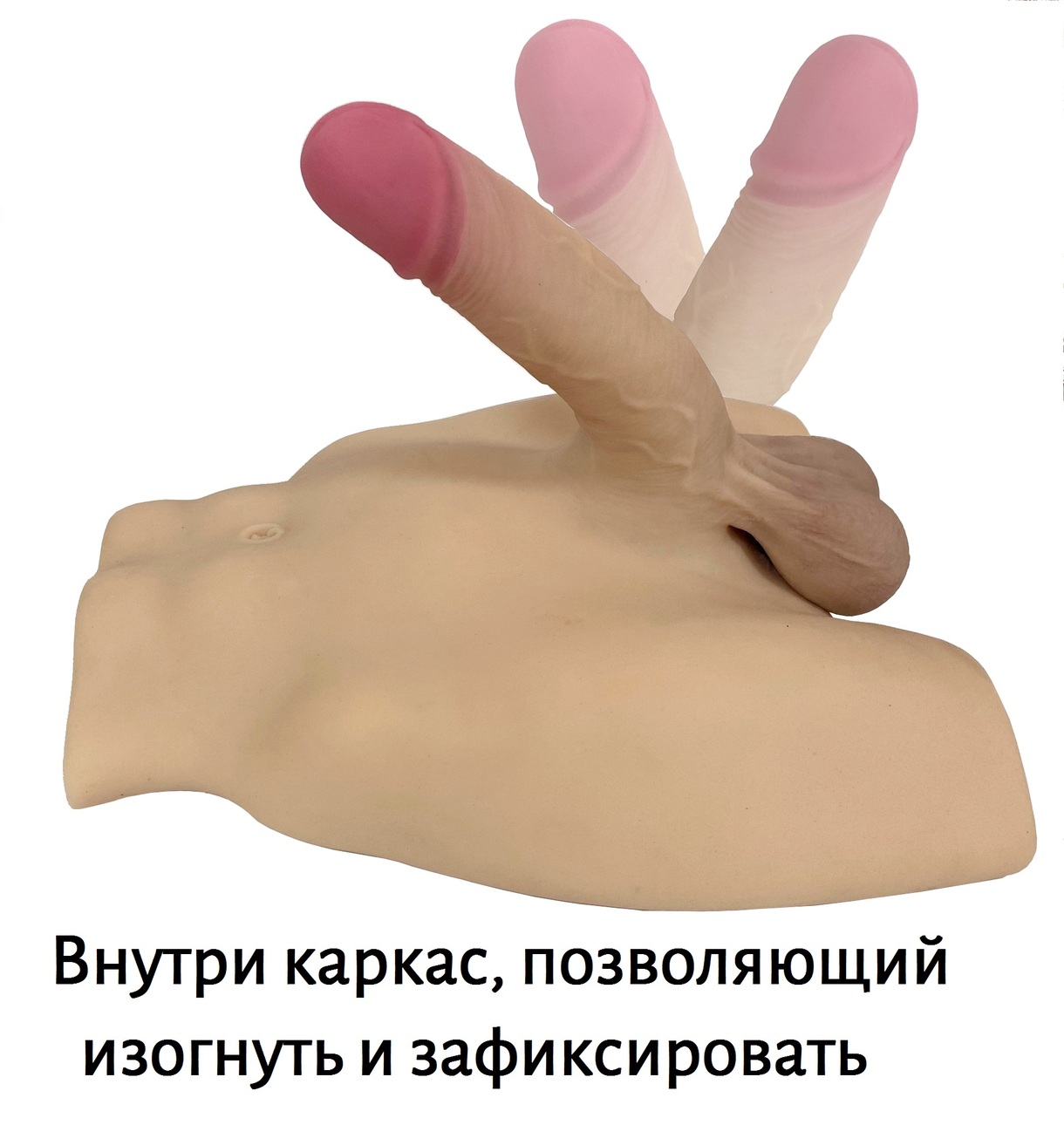 Фаллоимитатор имеет многослойную структуру. Наружная оболочка сделана из мягкого материала. Внутри более твердый каркас, который можно изогнуть и придать ему любую форму. Измененная форма сохраняет конфигурацию.