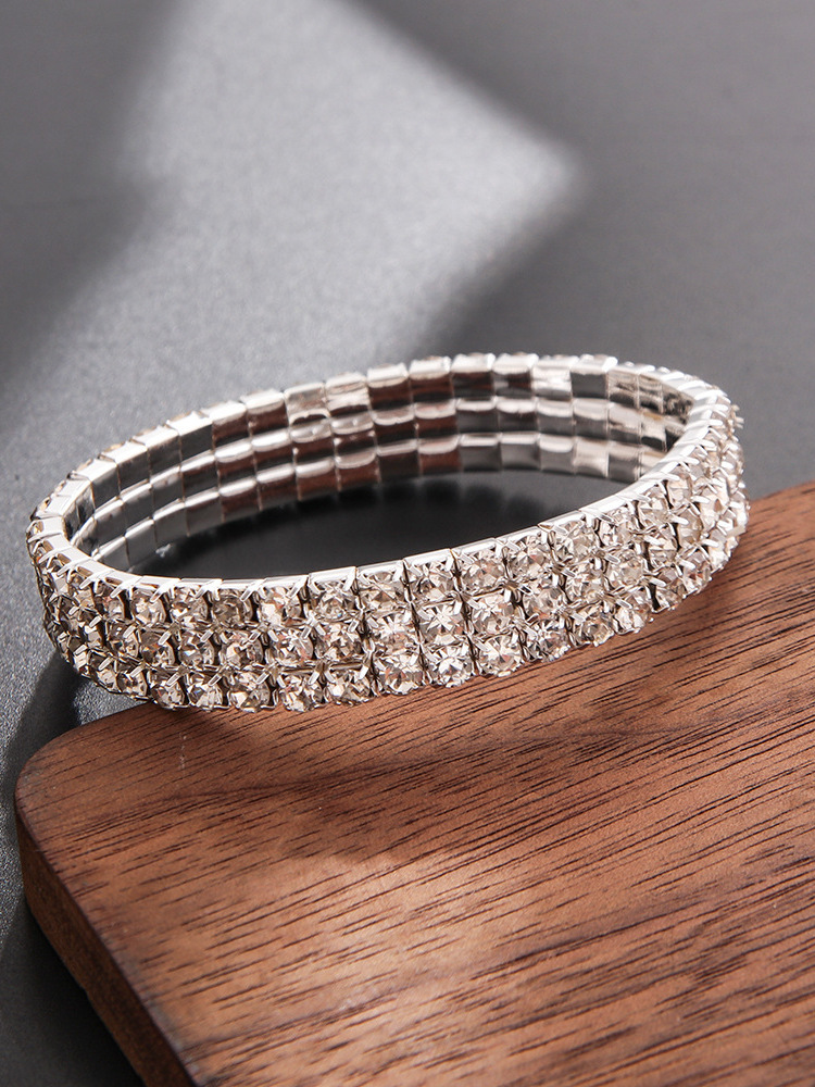 Браслет состоит из 3-х полос белых страз, скрепленных между собой.
