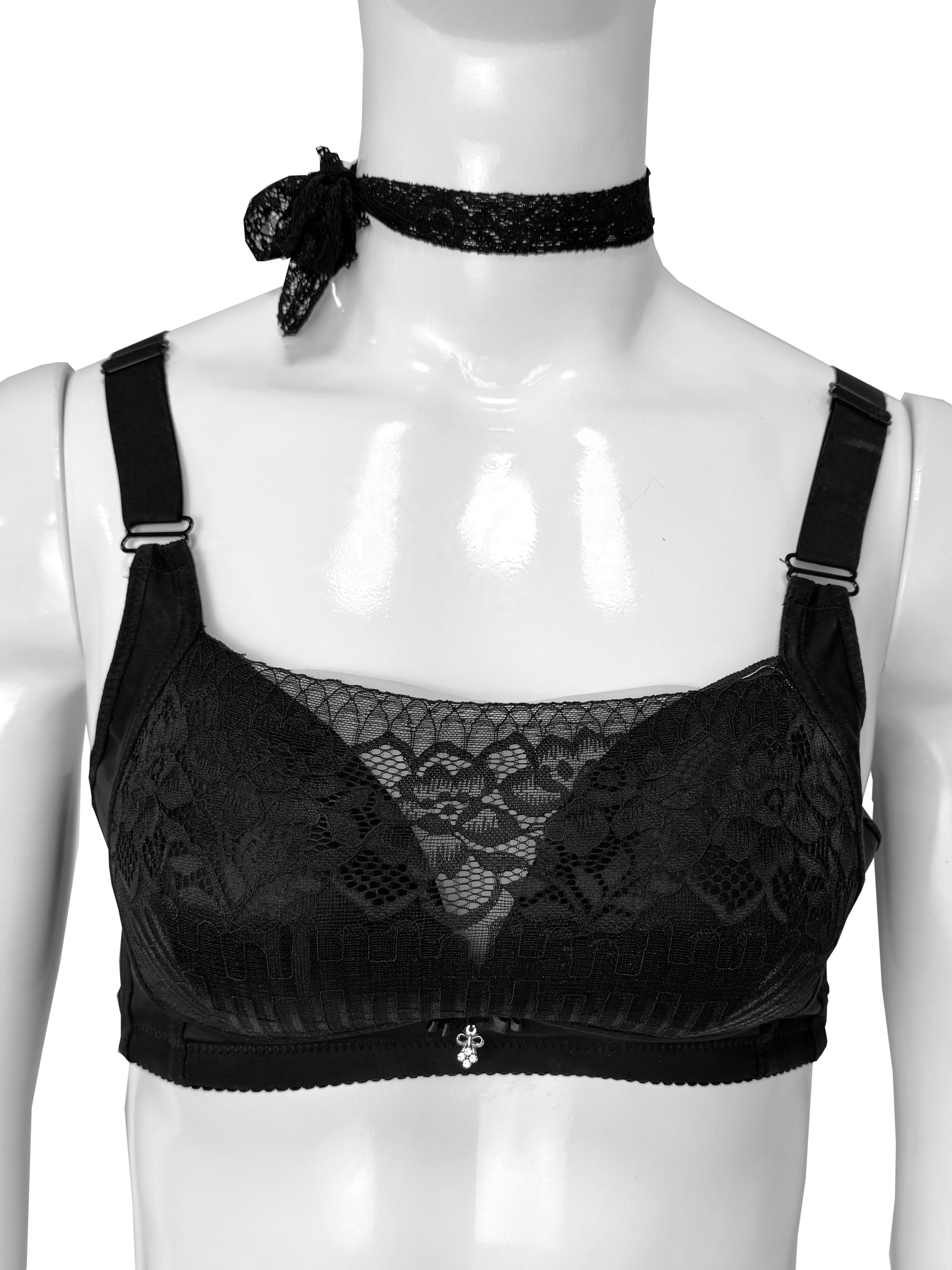 Бюстгальтер состоит из поролоновых чашечек и кружева поверх них. Как в сами чашки, так и в образующийся карман, можно вложить силиконовые протезы.