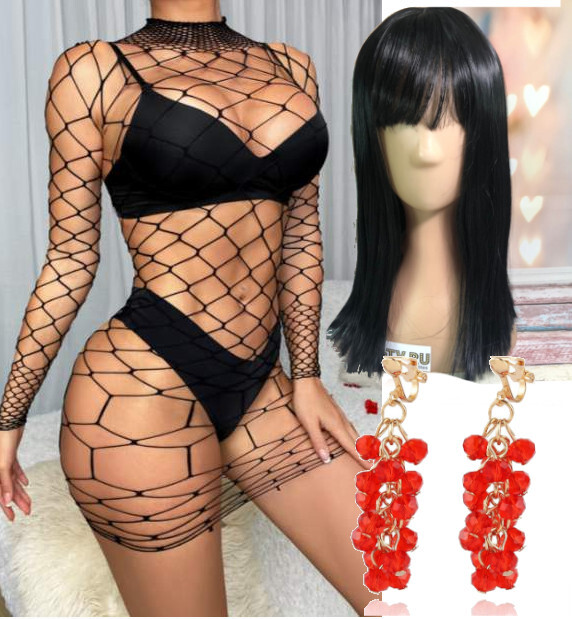 Эротическое платье-сеточка выполнено из мягкого эластичного материала.
