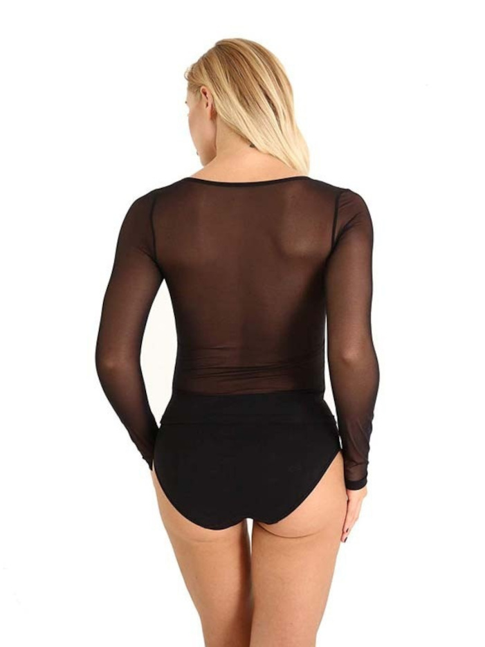 Футболка выполнена из приятной к телу прозрачной микросетки. Материал очень эластичный