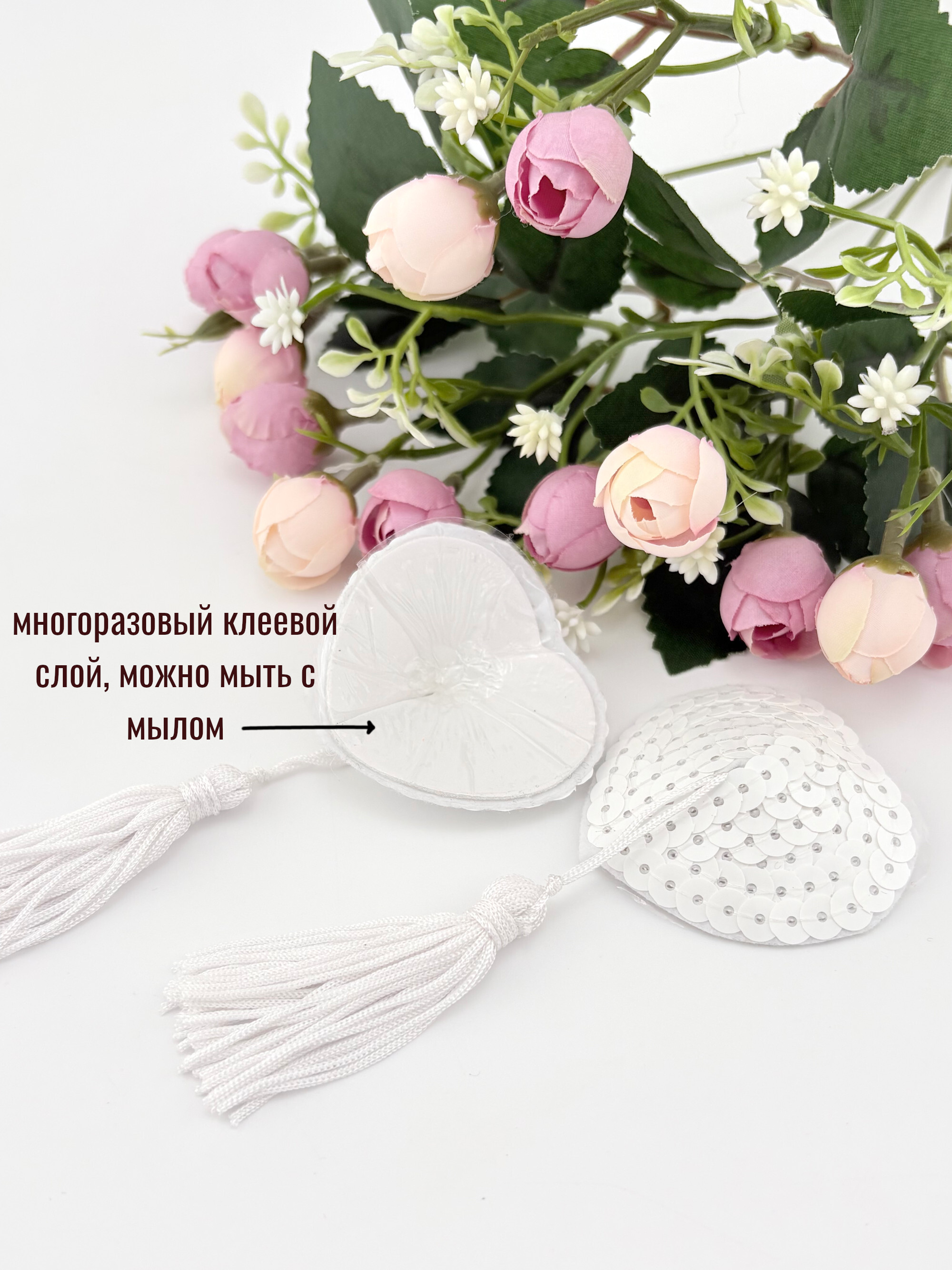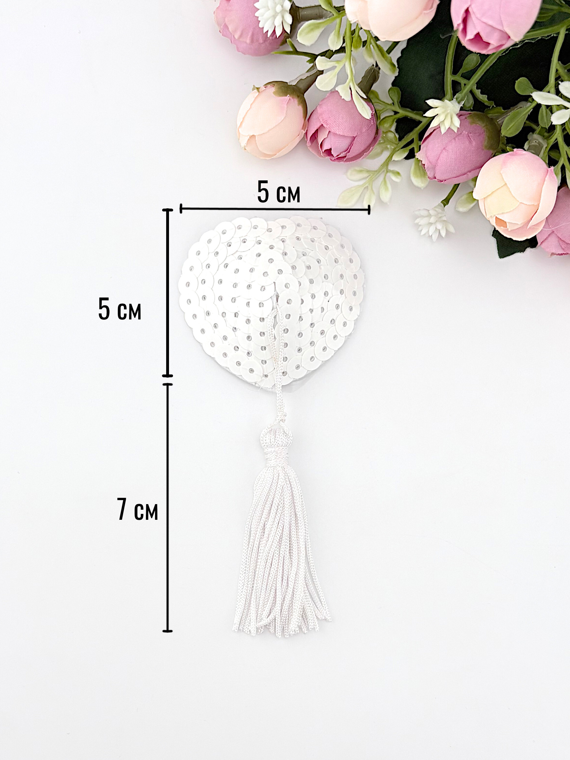 Очаровательные пэстис с кисточками будут игриво смотреться на груди. Пэстис расшиты белыми пайетками.